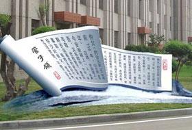 校園雕塑,這種物化了的精神載體,它集中反映了學校這個特定群體的道德價值和審美取向,是進行道德教育、審美教育的最好素材之一。