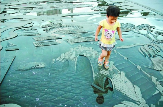 地雕,可能你見過很多,但太小的、缺乏創意的、底蘊不夠的經常被你轉身遺忘,而娛樂性的往往好玩之后沒有太多印象!比如很多公園就有地面上的繪畫,但都記不清了。