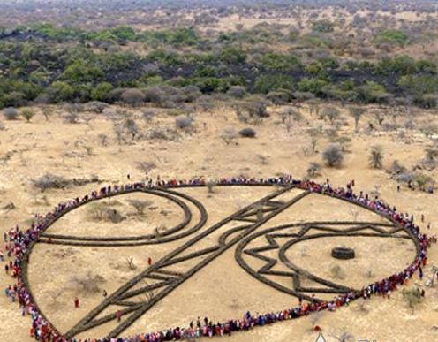 澳大利亞藝術家安德魯·羅杰斯前往非洲西南部的納米比亞進行一次旅行,與游牧的Himba部落成員共同完成一件石頭的地質印痕或是地面雕塑。